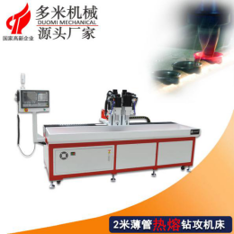 多米熱熔鉆攻機(jī)采用自主研發(fā)CNC數(shù)控系統(tǒng),無(wú)需編程可直接導(dǎo)“CAD”圖檔生成程序。雙主軸分別裝夾熱熔鉆頭和擠壓絲錐,一次裝夾完成拉伸孔和攻絲兩道工序,節(jié)省時(shí)間的同時(shí)也避免二次裝夾帶來(lái)的誤差。熱熔鉆攻機(jī)主軸添加散熱裝置,因?yàn)闊崛坫@是通過(guò)特殊的熱熔鉆頭部與產(chǎn)品表面摩擦鉆孔,會(huì)有700~800度上下的高溫,主軸加散熱裝置,可以降低連續(xù)鉆孔而產(chǎn)生的熱量,也可以延長(zhǎng)熱熔鉆的壽命,最主要還可以保證熱熔鉆攻機(jī)的主軸(內(nèi)部結(jié)構(gòu)的刀桿和本體)不會(huì)因過(guò)高的溫度而損壞。